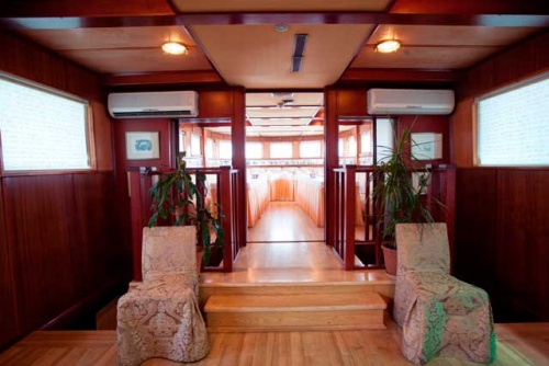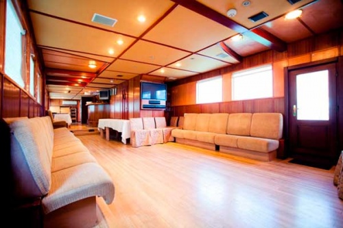 Банкетный зал на 60 мест дополняется двухуровневой крытой террасой, а наличие сауны, караоке и бара позволит приятно провести время с друзьями или деловыми партнерами. Кроме того, для гостей доступен целый спектр водных развлечений, включая катание на гидроцикле и водных лыжах, а комфортабельные каюты предоставляют все условия для качественного отдыха.